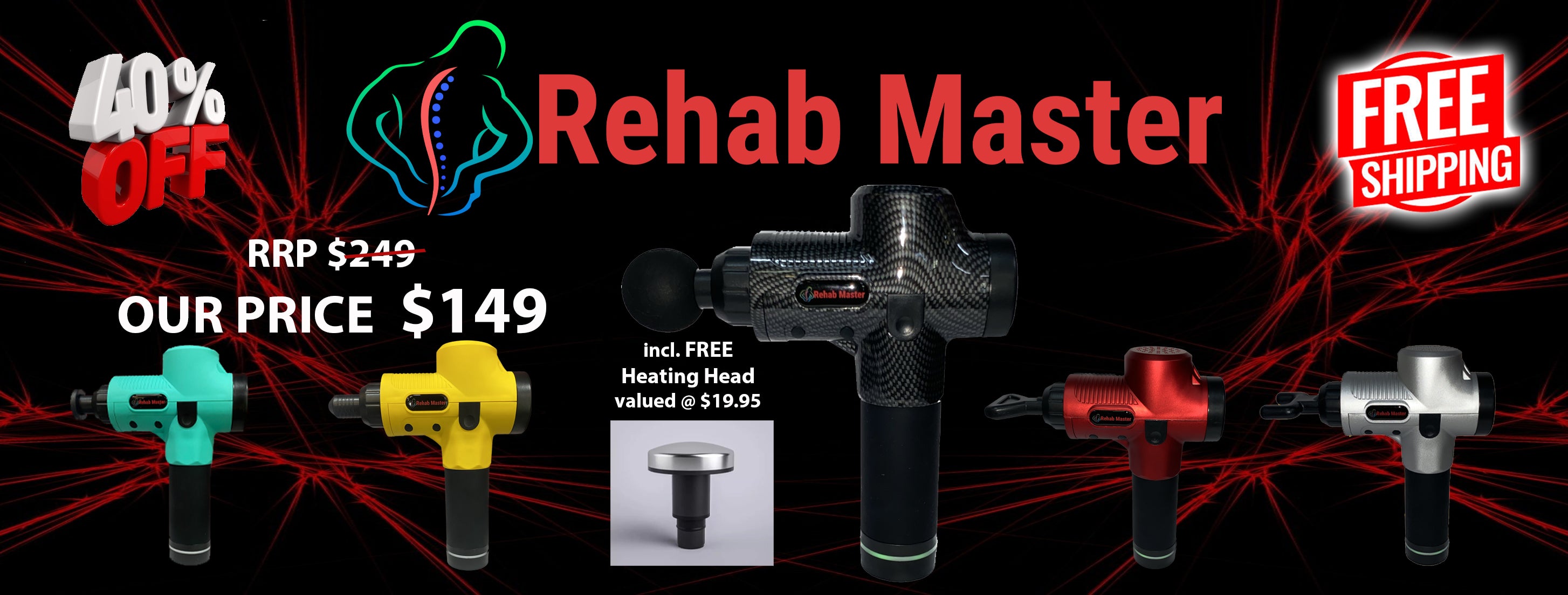 REHAB MASTERA massage gun that is superior to the rest. With a great range of colours to suit your mood, they have all the regular attachments, BUT.... they also include a FREE heating head to warm up the muscles quicker. Heating head regularly valued at $19.95, so now you get more bang for your buck. Super quiet, great battery run time, and comes in it's very own carry case.